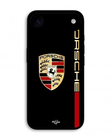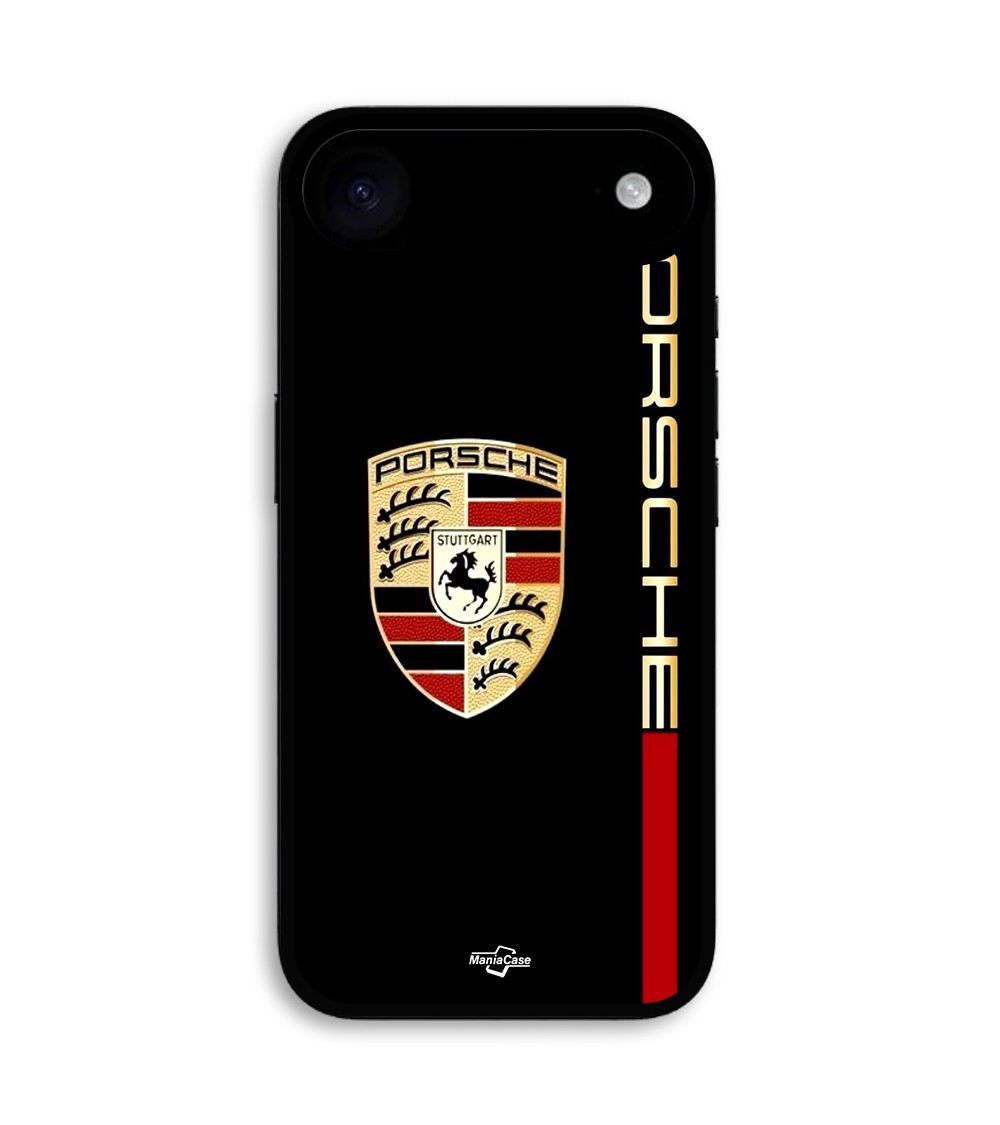 Coque Pour iPhone 17 Air PORSCHE logo rouge et dorée fond noir