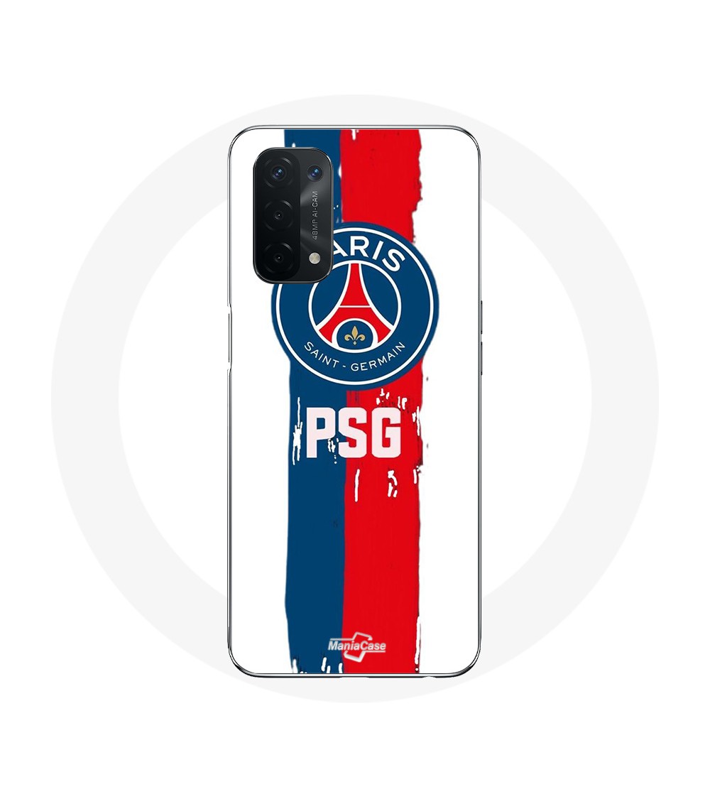 Coque pour Oppo A74 5G Paris Saint Germain PSG Logo Bleu Rouge Fond Blanc pour protéger et décorer votre smartphone