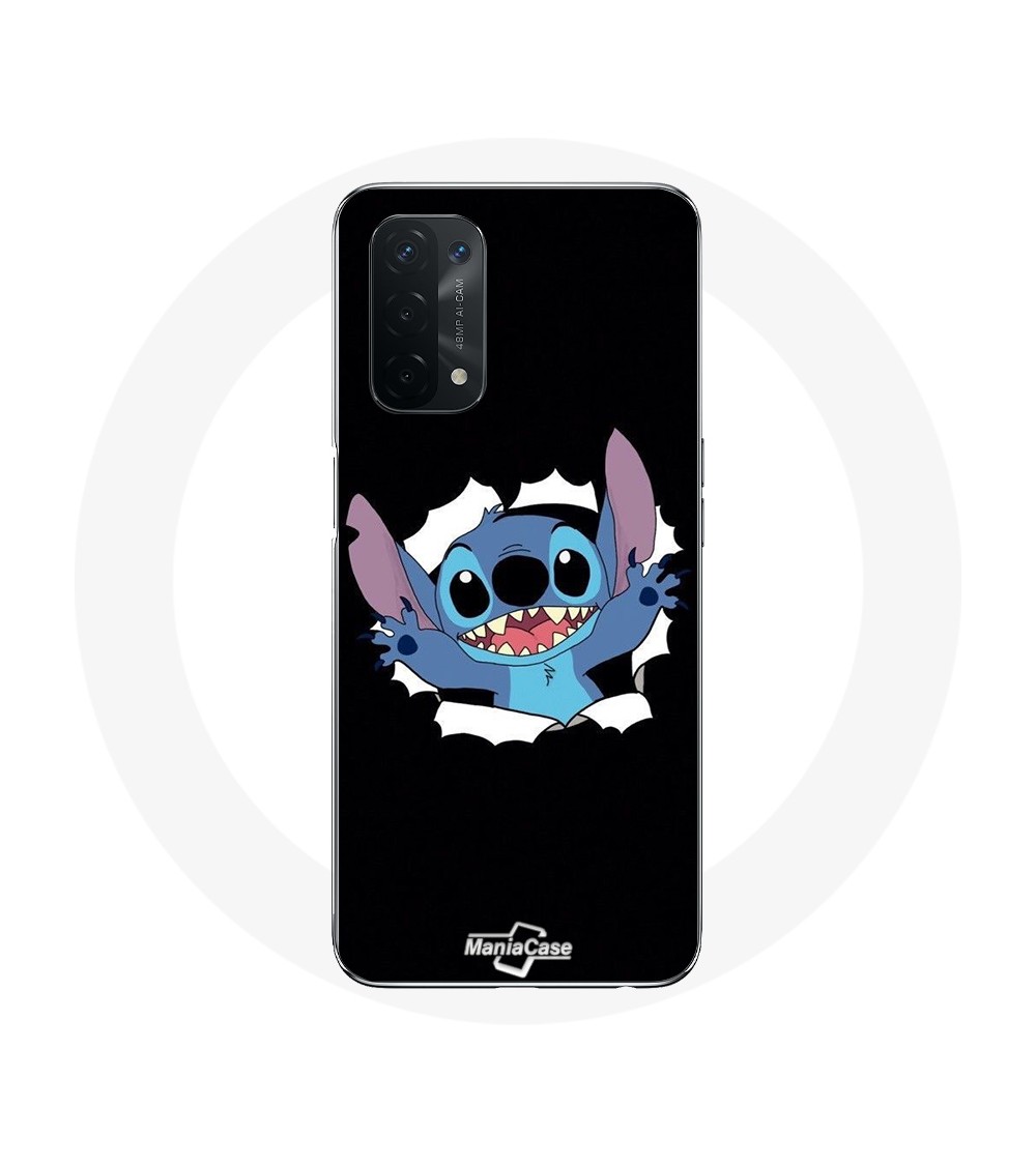 Coque pour Oppo A74 5G Ohana Stitch mignon fond Noir pour protéger et décorer votre smartphone