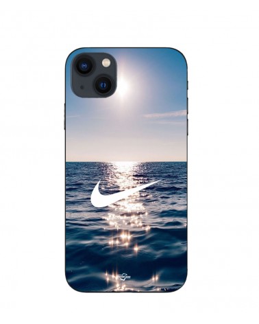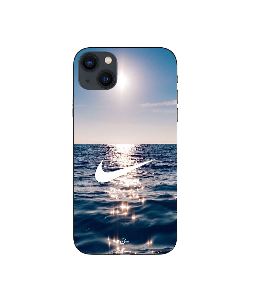 Coque iPhone 15 nike logo blanc mer solei
