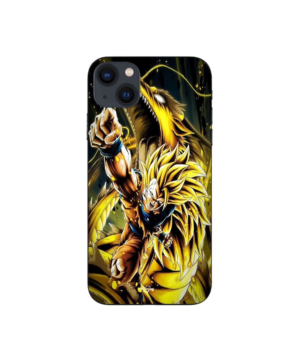 Coque iPhone 15 Son Goku Super Saiyan SSJ3 Attaque point Dragon
