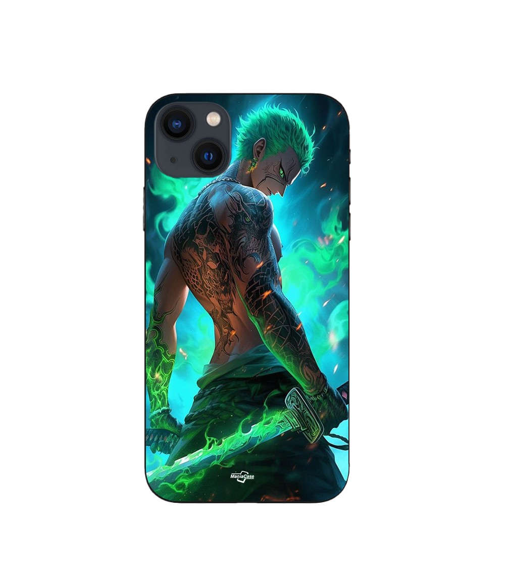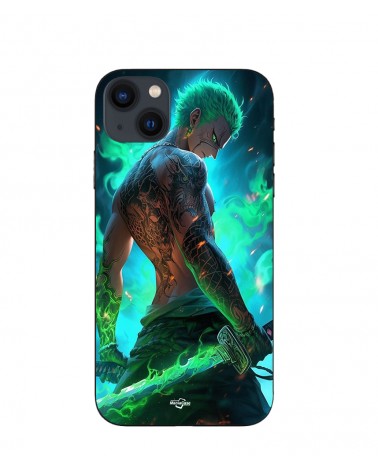 Coque iPhone 15 Plus One piece Zoro 3D Manga anime Fanart