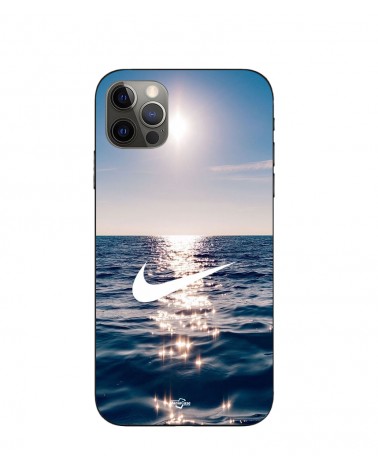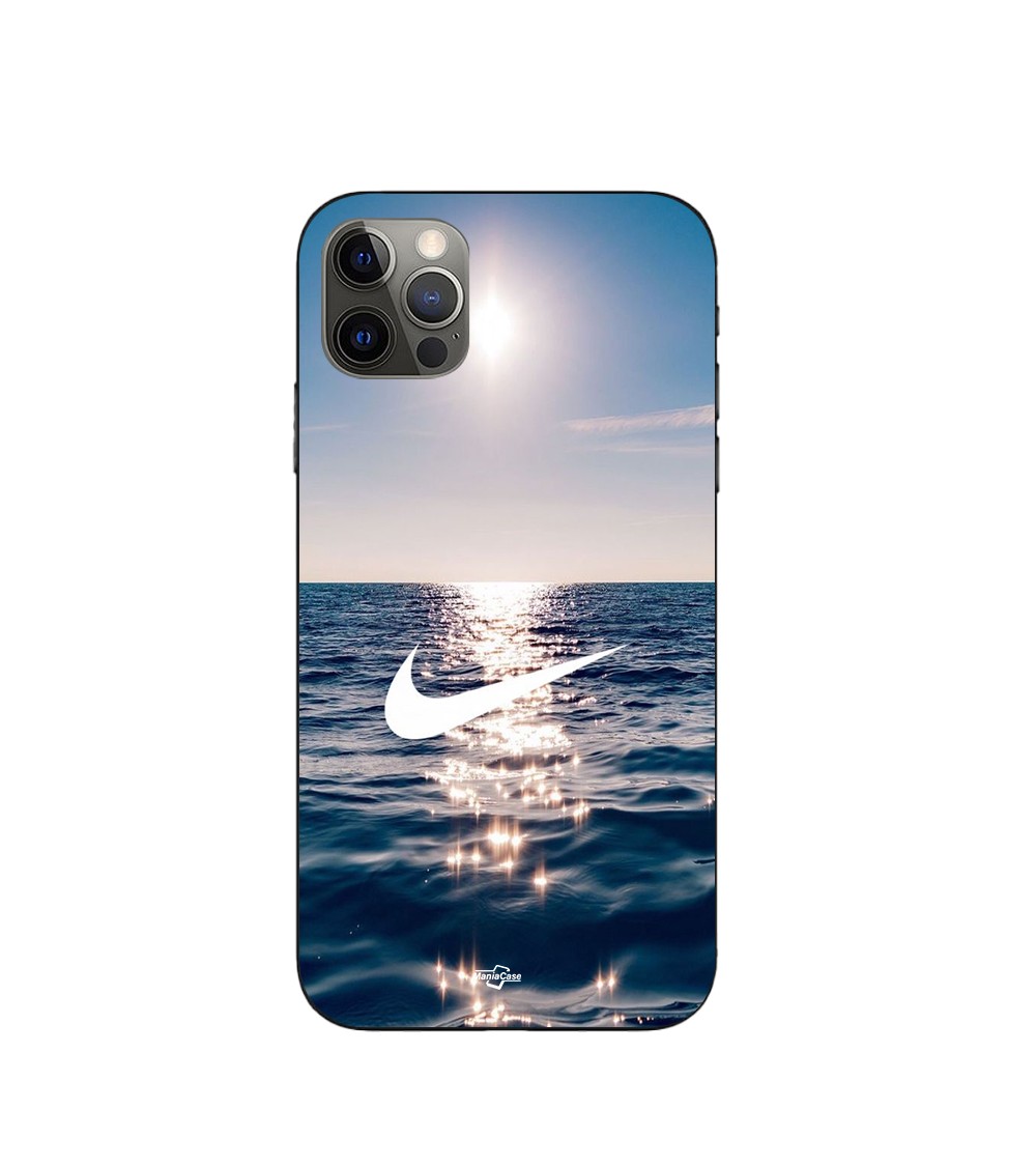 Coque iPhone 15 Pro nike logo blanc mer solei