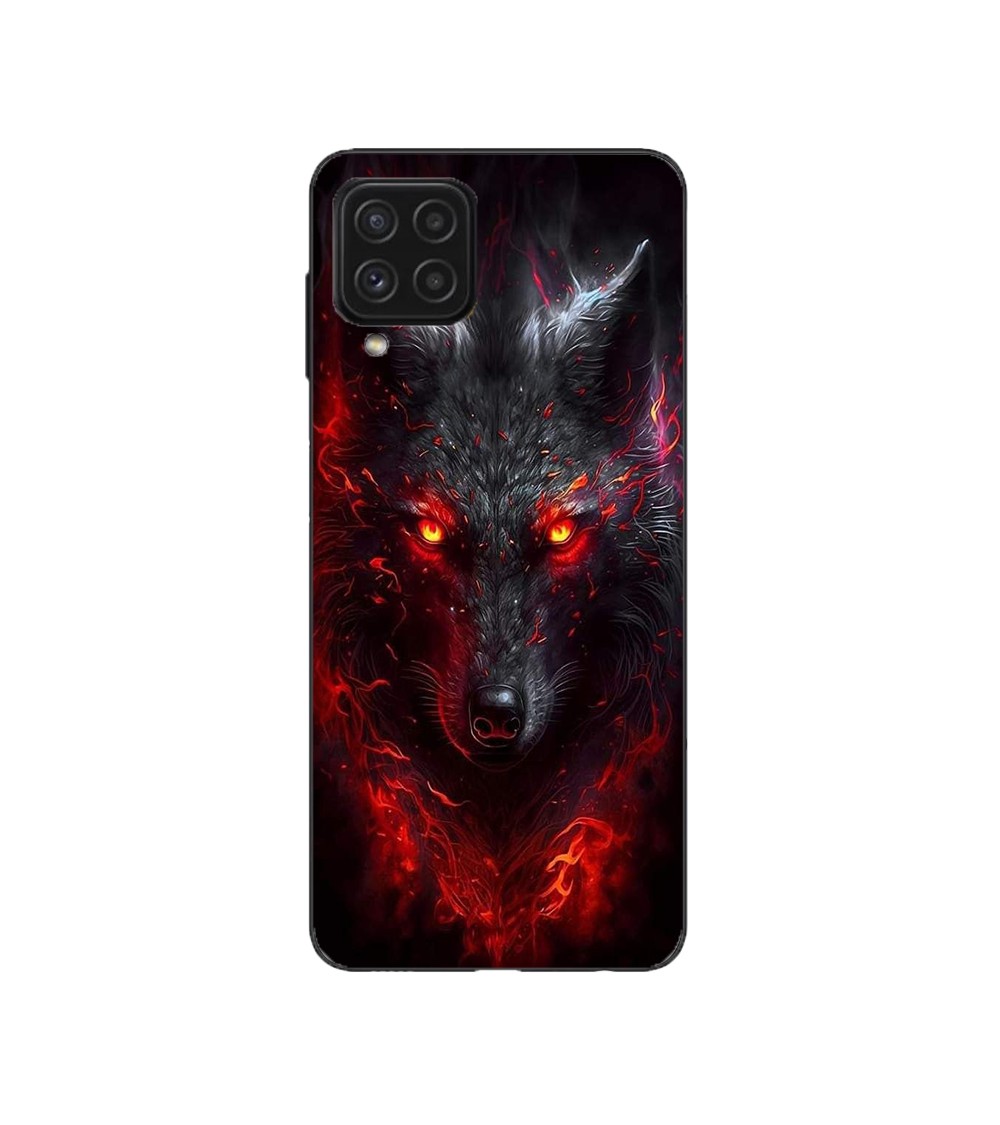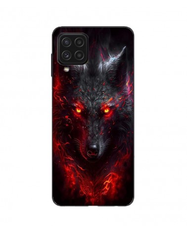 Coque Samsung Galaxy A12 Loup noir feu rouge