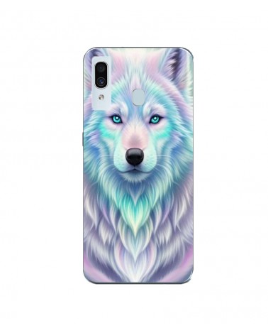 Coque Samsung Galaxy A20e Loup blanc reflet violet