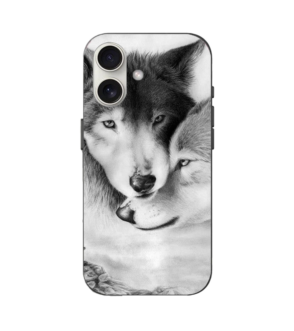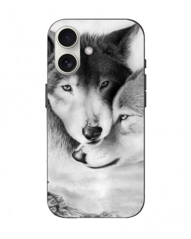 Coque Iphone 16 Le loup et la louve Animal noir et blonc