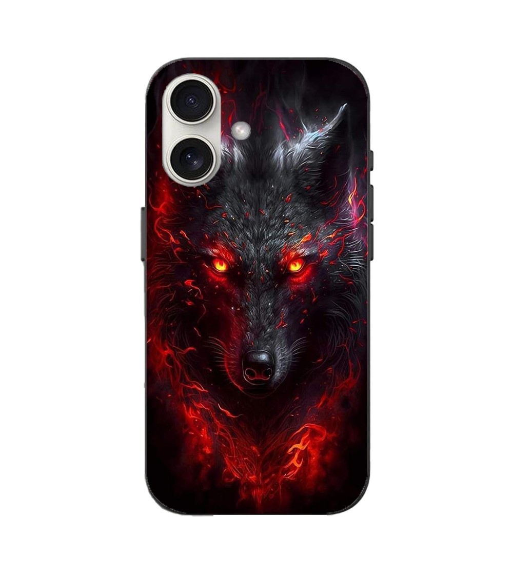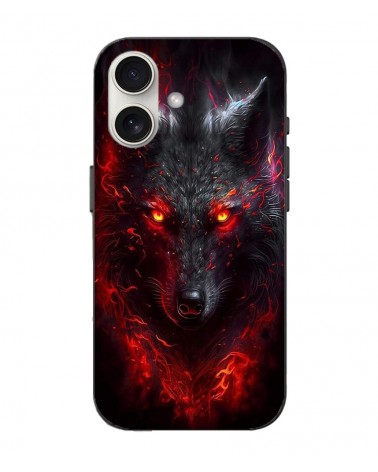 Coque Iphone 16 Plus Loup noir feu rouge