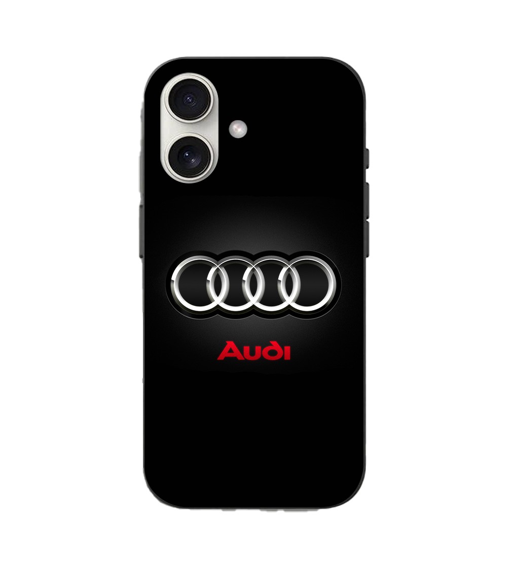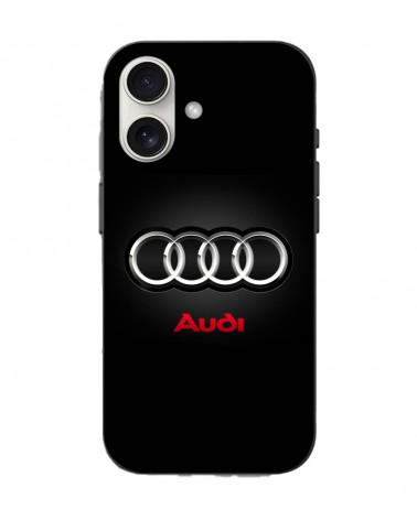 Coque Iphone 16 Logo de voiture Audi gris et rouge