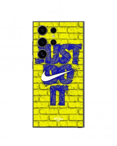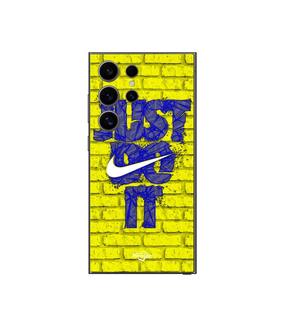 Coque Samsung Galaxy S24 ultra logo just do it couleur bleu front jaune