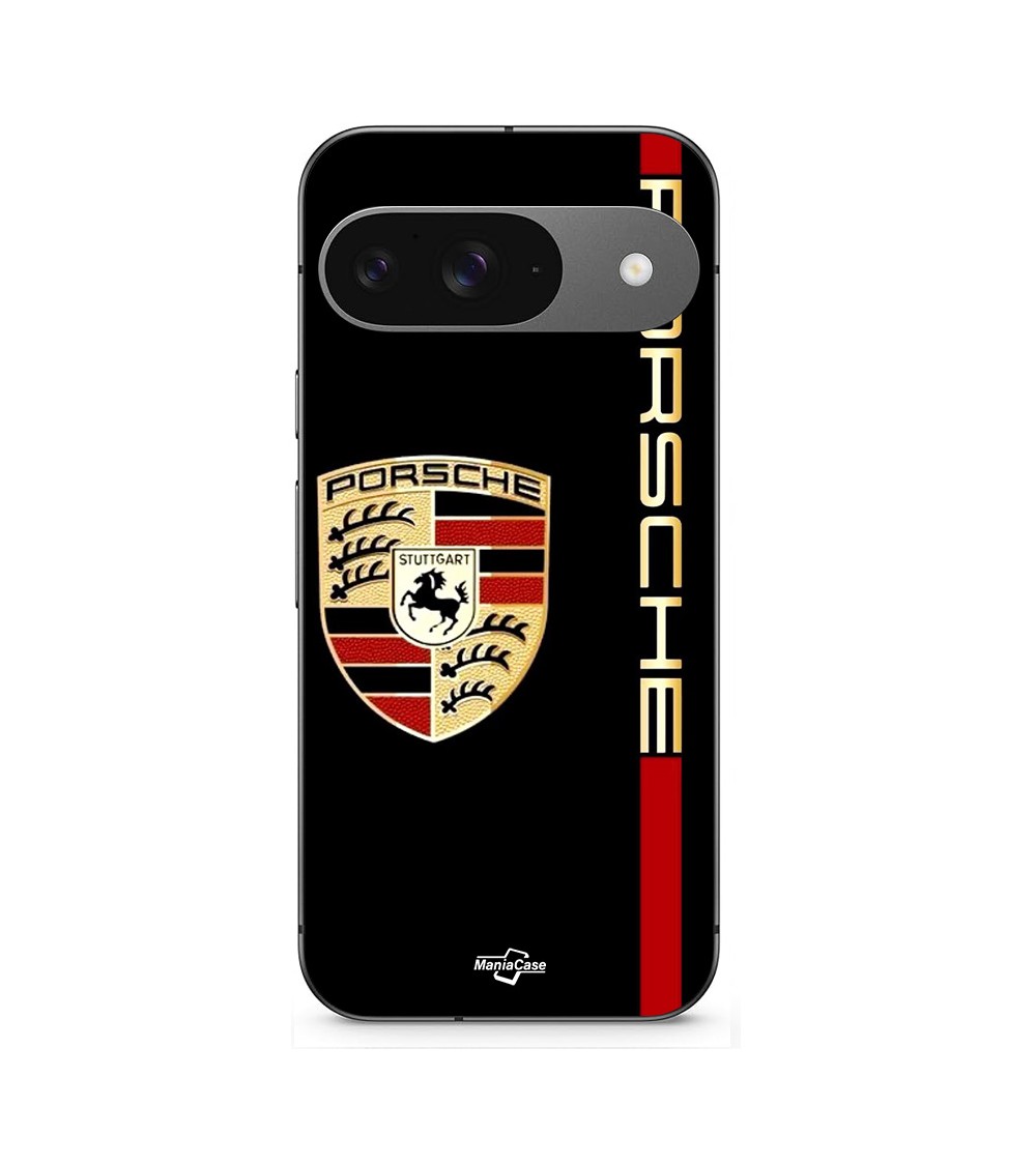 Coque Google Pixel 9 PORSCHE logo rouge et dorée fond noir