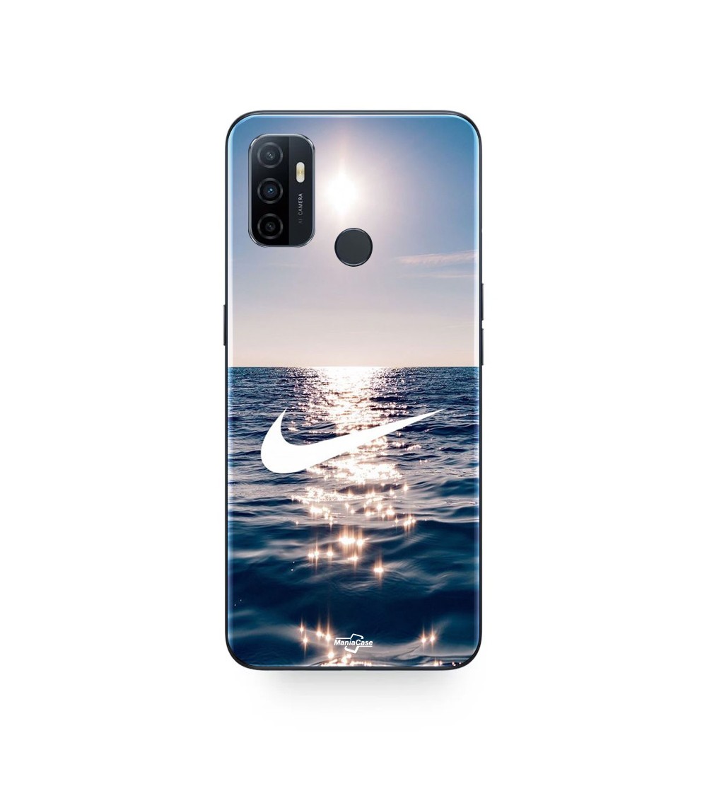 Coque Oppo A32 nike logo blanc mer soleil