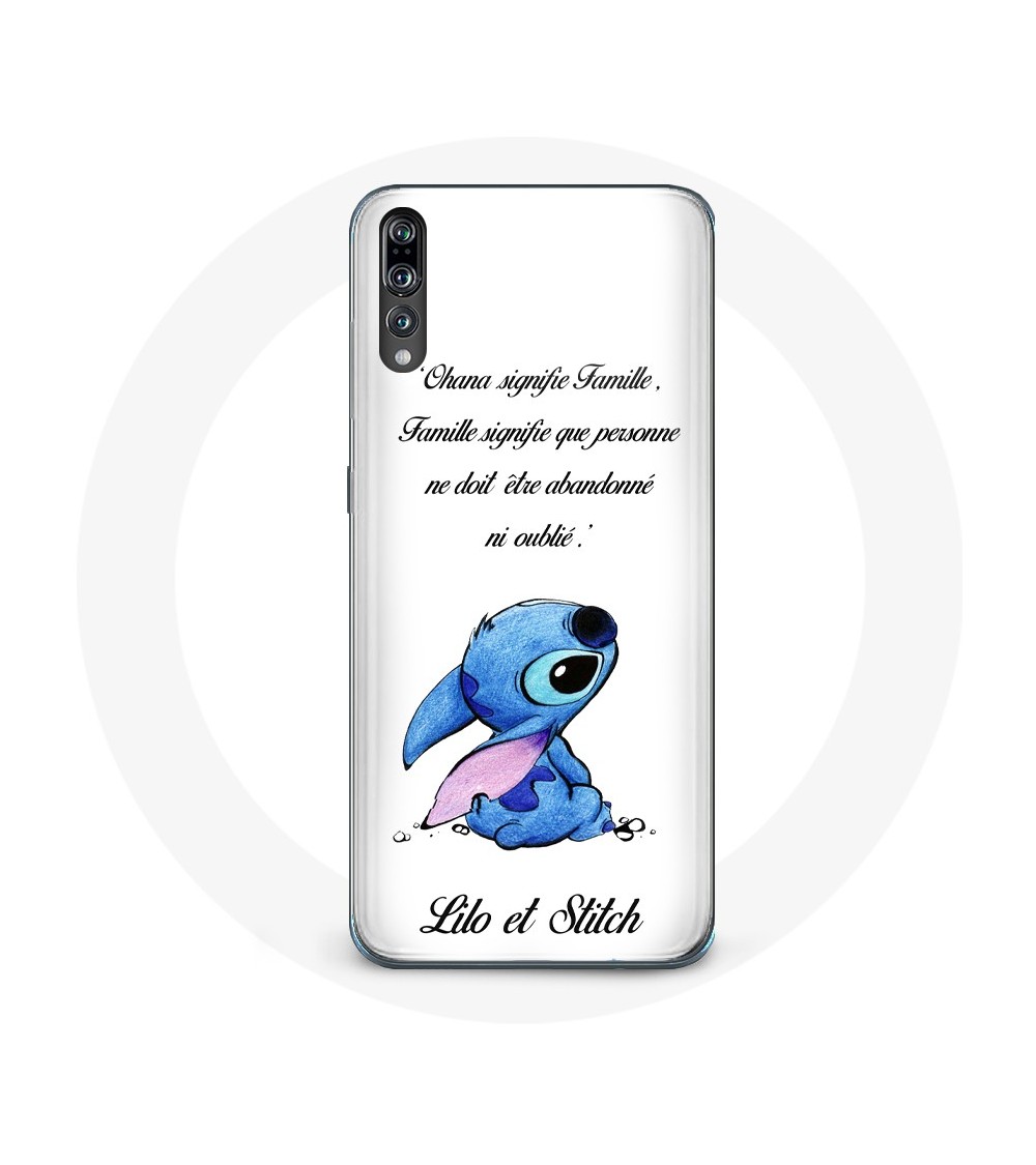 Coque de protection pour Huawei p20 Lilo et Stitch Ohana Citation Blanc