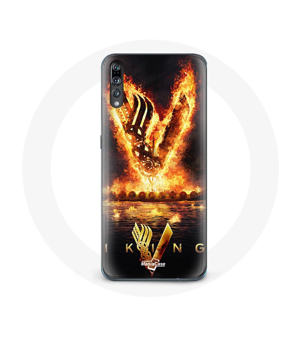 Coque pour Huawei P20 Vikings Série Saison 6 logo V Epée de Feu Fond Noir