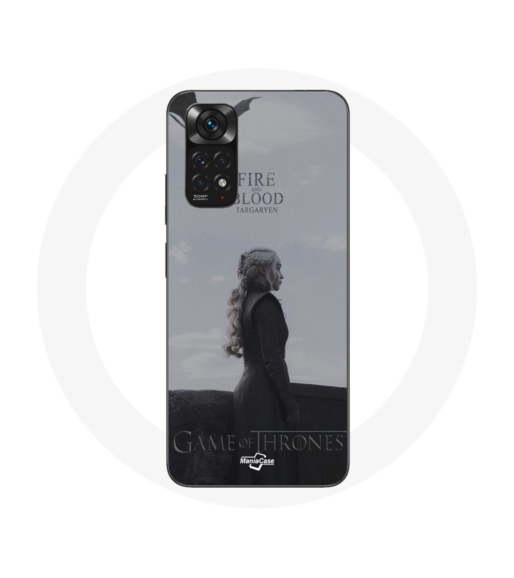 Coque pour Xiaomi Redmi Note 11S 4G Game of Thrones Saison 8 Daenerys Targaryen feu et sang Le Trône de Fer Logo Gris