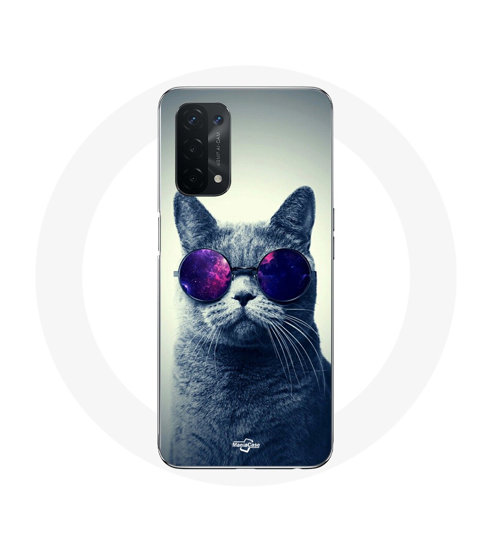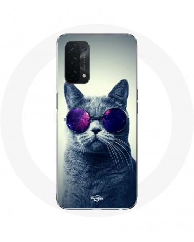 Coque de protection pour Oppo A74 Chat lunettes Style