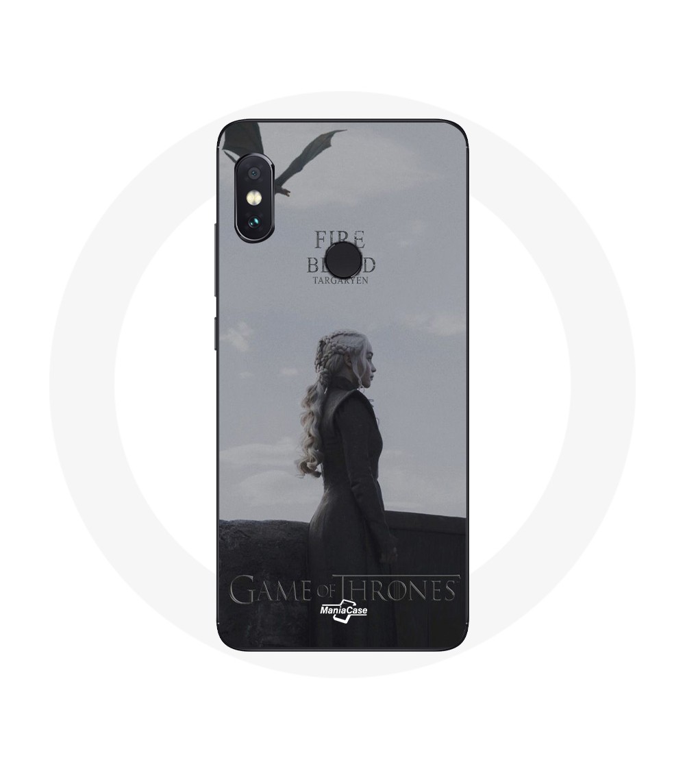Coque pour Xiaomi Redmi Note 5 Pro Game of Thrones Saison 8 Daenerys Targaryen feu et sang Le Trône de Fer Logo Gris
