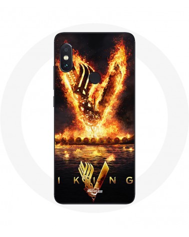 Coque pour Xiaomi Redmi Note 5 AI Dual Camera Vikings Série Saison 6 logo V Epée de Feu Fond Noir