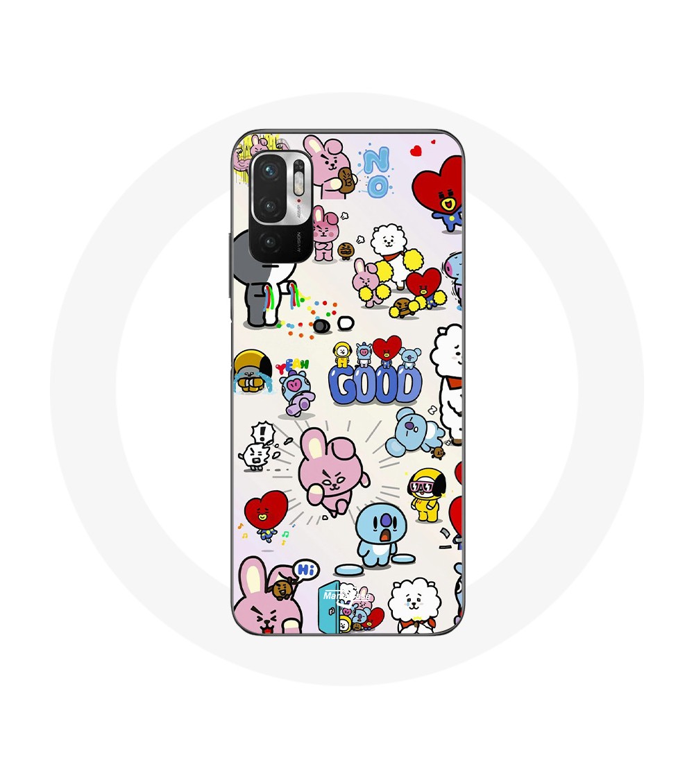Coque pour Xiaomi Redmi Note 10 5G BTS Bangtan Sonyeondan BT21 Van Tata Chimmy Cooky Rj Koya Mang Et Shooky