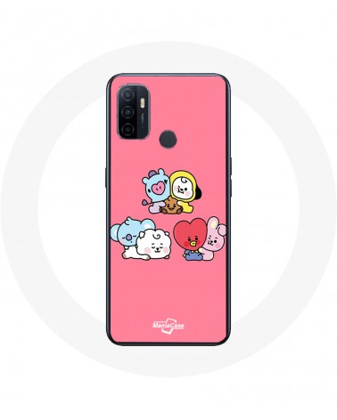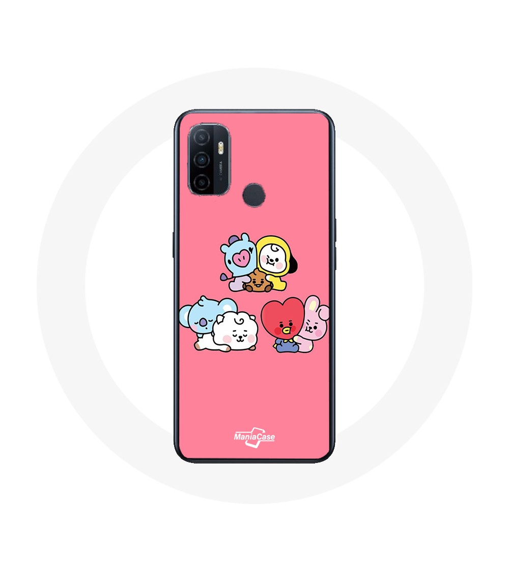 Coque pour Oppo A53 BTS BT21 Tata Chimmy Cooky Rj Koya Shooky Et Mang Fond Rose