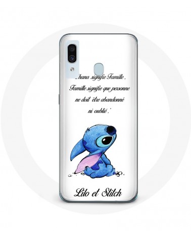 Coque de protection pour Samsung Galaxy A20 Lilo et Stitch Ohana Citation Blanc