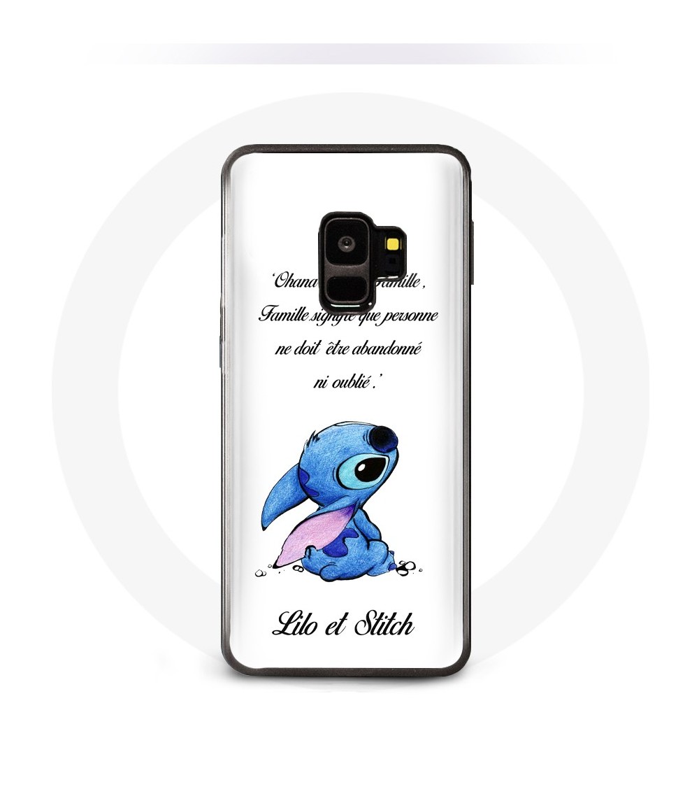 Coque pour Samsung Galaxy S9 plus Lilo et Stitch Ohana Citation Blanc