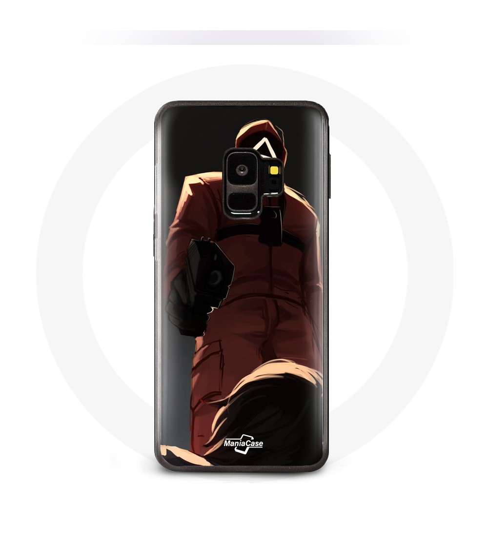 Coque pour Samsung S9 plus Squid Game Soldat Rouge avec Masque Triangle