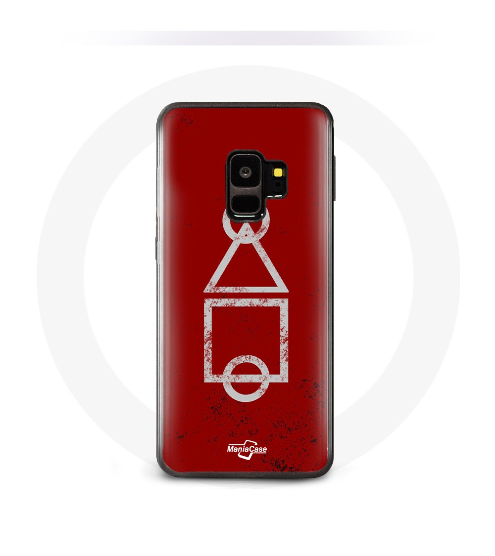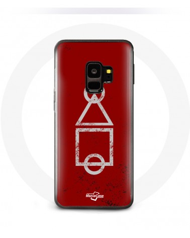 Coque pour Samsung S9 plus Squid Game logo symboles cercle carre triangle Fond Rouge