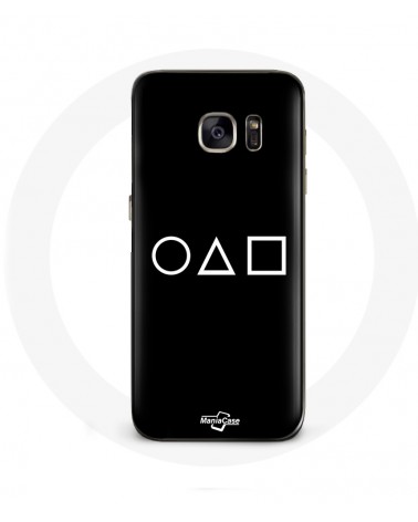 Coque pour Samsung Galaxy S6 Edge Squid Game logo symboles cercle carre triangle Fond Noir
