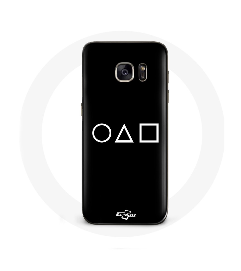 Coque de protection pour samsung galaxy S6 Squid Game logo symboles cercle carre triangle Fond Noir