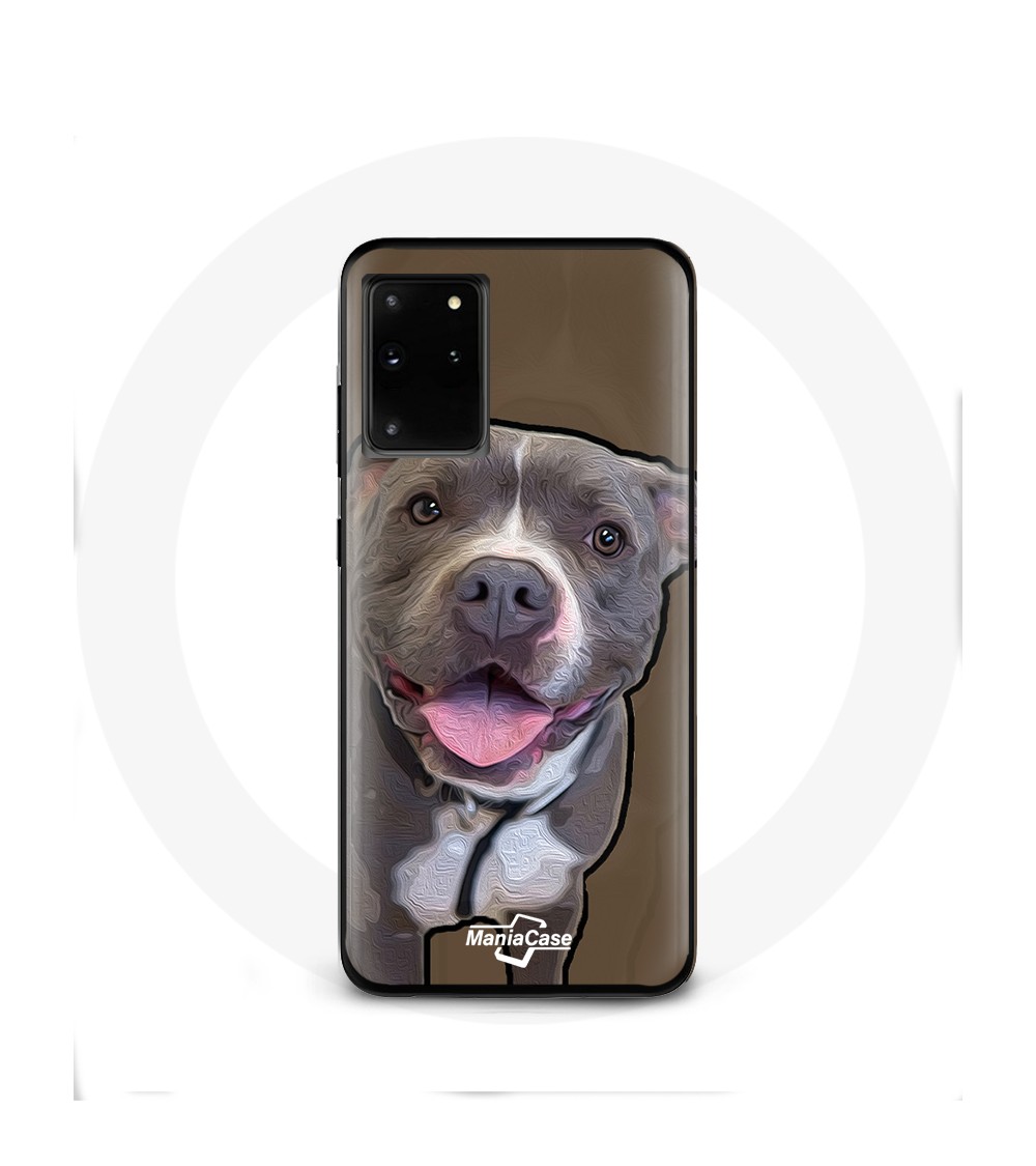 Coque de protection pour Samsung Galaxy S11 Plus Chien Pitbull Blanc gris