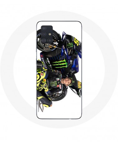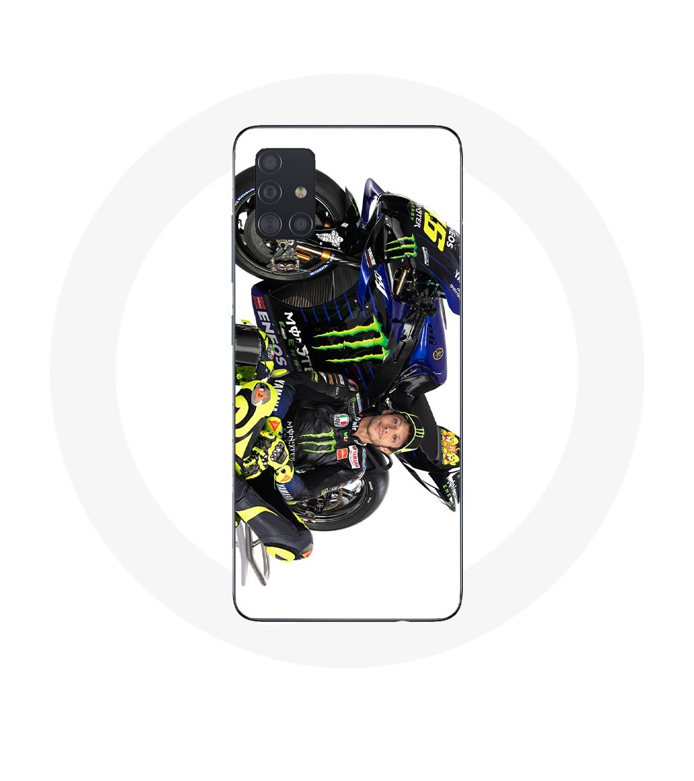 Coque de protection pour Samsung Galaxy A71 Valentino Rossi Pilote de vitesse fond blanc