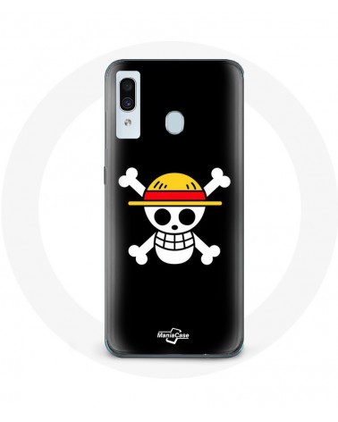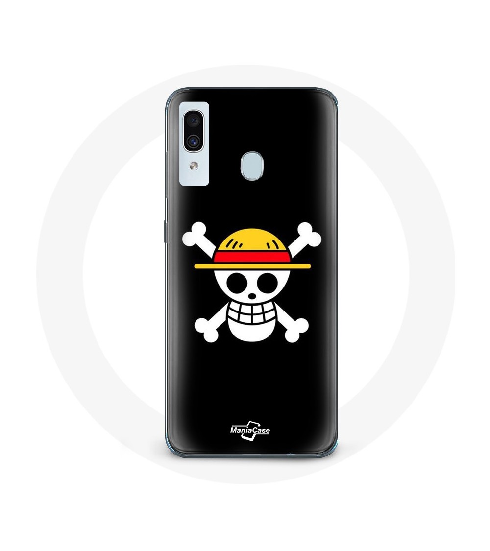 Coque de protection pour Samsung Galaxy A40 One Piece Manga Tete de Mort Fond Noir