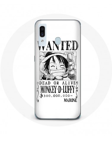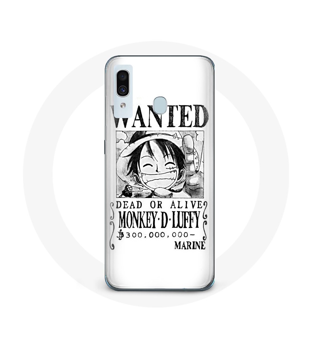 Coque de protection pour Samsung Galaxy A40 Luffy One Piece Manga affiche de recherche Blanche