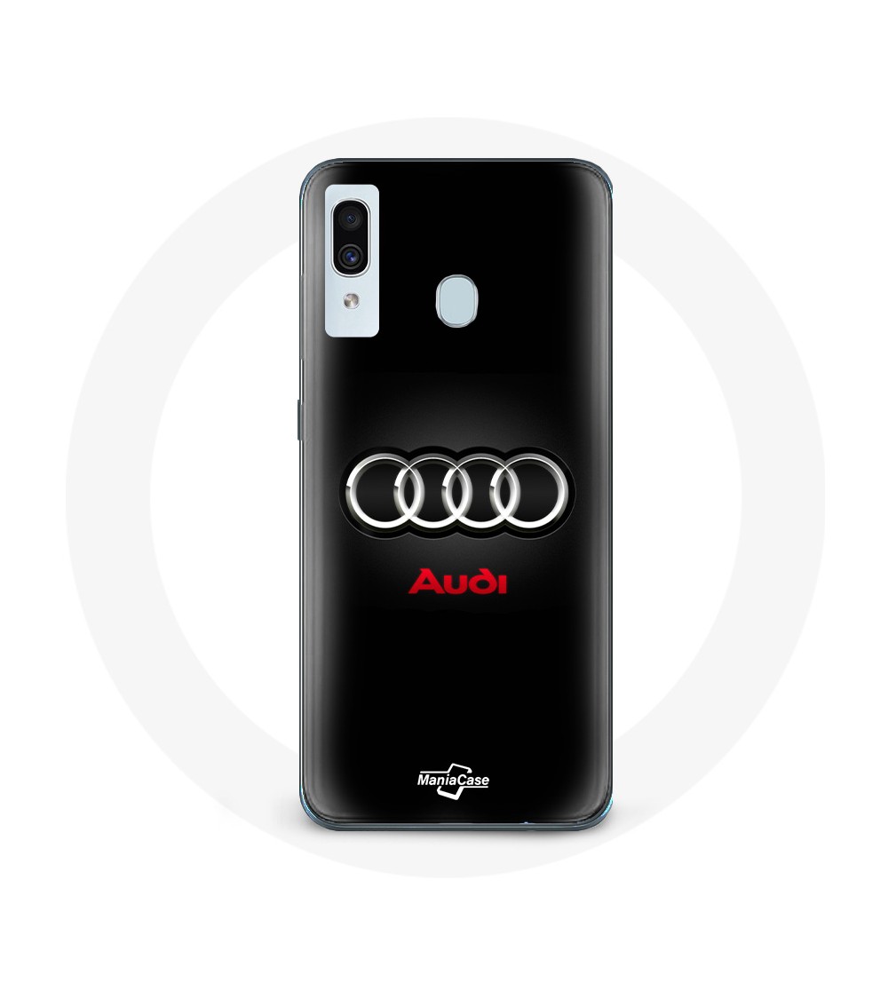 Coque de protection pour Samsung Galaxy A40 Audi Logo Métal fond noir