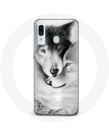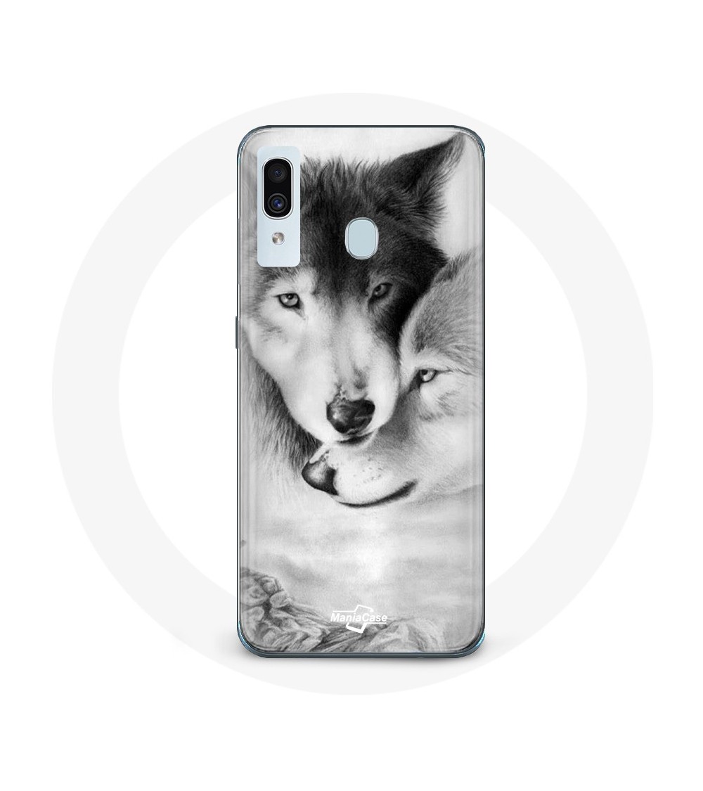 Coque de protection pour samsung galaxy A40 Loup Duo animaux