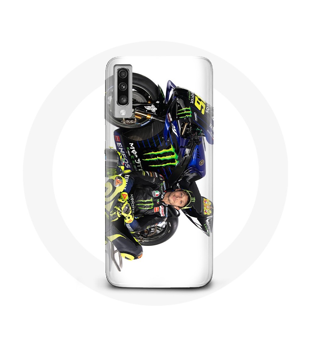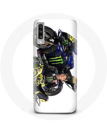 Coque de protection pour Samsung Galaxy A50 Valentino Rossi Pilote de vitesse fond blanc