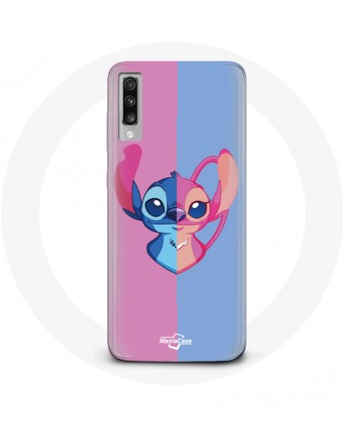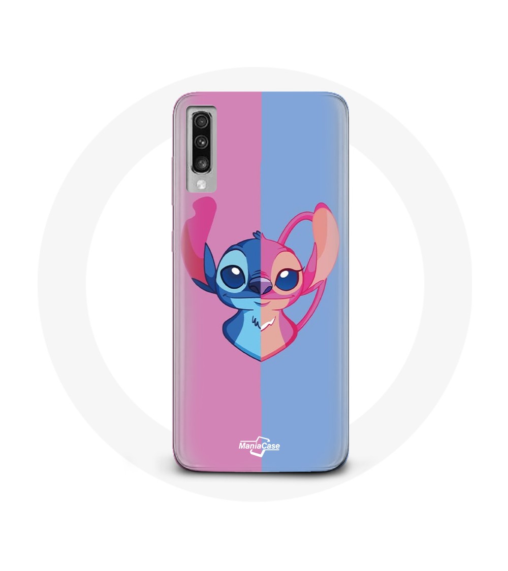 Coque pour Samsung Galaxy A50 Stitch et angel bleu rose