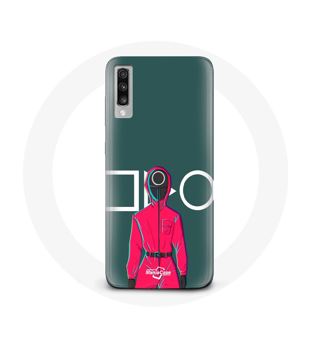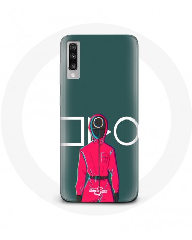 Coque de protection pour Samsung Galaxy A70 Squid Game Soldat Rouge avec Masque Cercle Fond Vert