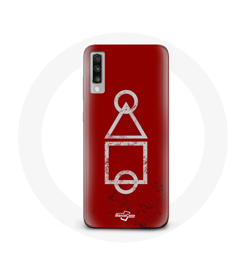 Coque de protection pour Samsung Galaxy A70 Squid Game logo symboles cercle carre triangle Fond Rouge