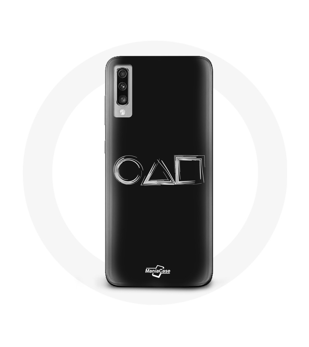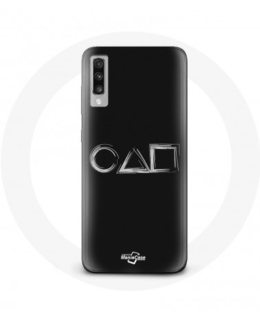 Coque pour Samsung Galaxy A70 Squid Game logo symboles carre cercle triangle Fond Noir