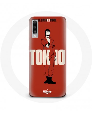 Coque de protection pour Samsung Galaxy A50 La casa de papel Tokyo Fanart logo Fond Rouge