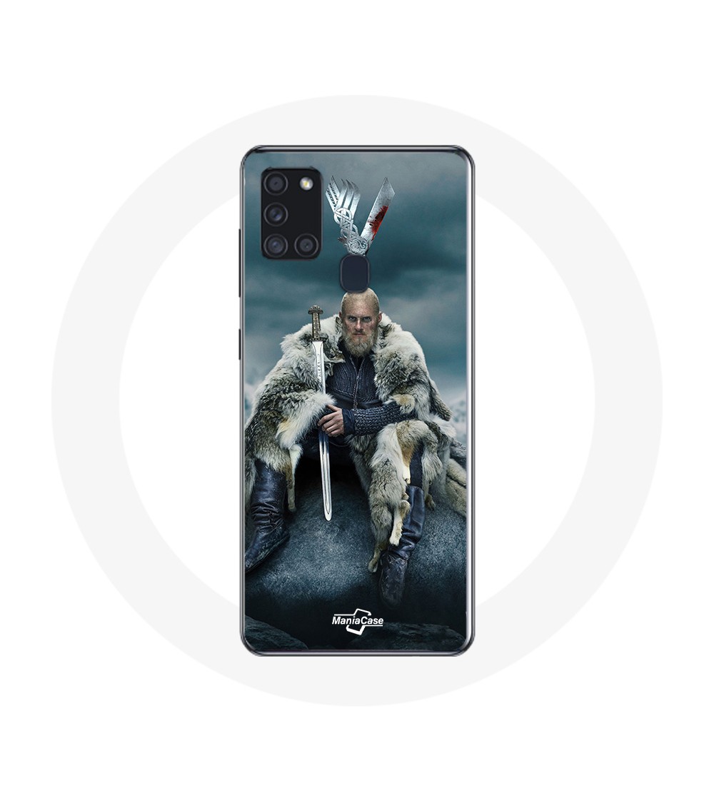 Coque de protection pour Samsung Galaxy A21S Vikings Série Saison 6 Ragnar Lothbrok logo V Epée Gris Fond Brouillard
