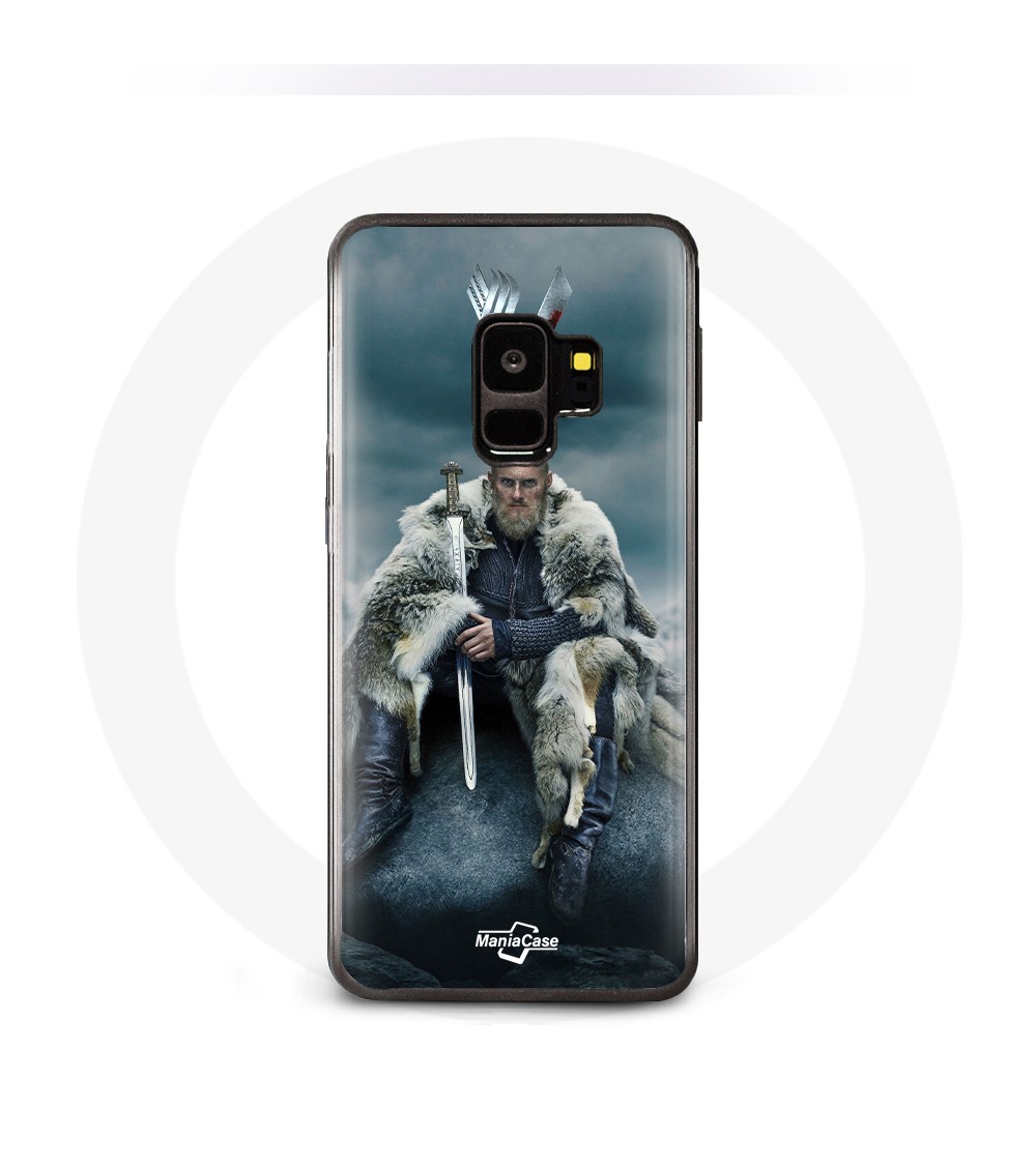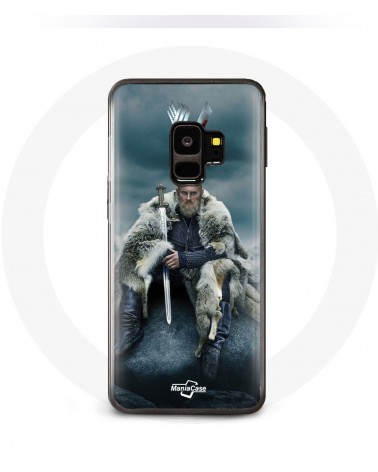 Coque pour Samsung Galaxy S9 Vikings Série Saison 6 Ragnar Lothbrok logo V Epée Gris Fond Brouillard