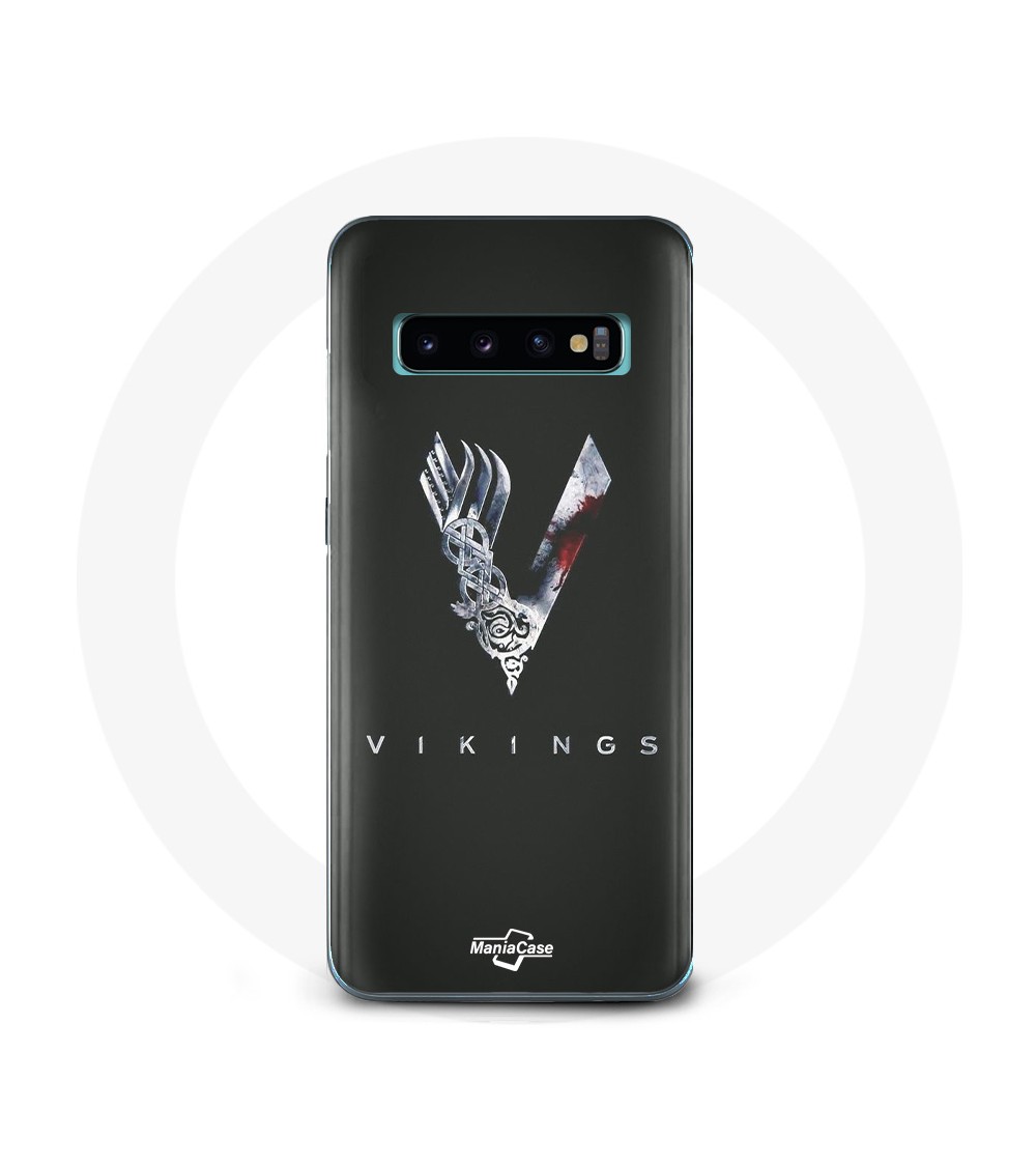 Coque de protection pour Samsung Galaxy S10 Edge Vikings Série Saison 6 logo V Epée Gris Fond Noir