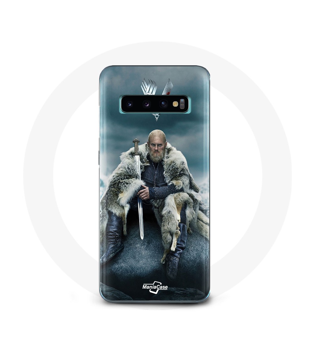 Coque pour Samsung Galaxy S10 Edge Vikings Série Saison 6 Ragnar Lothbrok logo V Epée Gris Fond Brouillard
