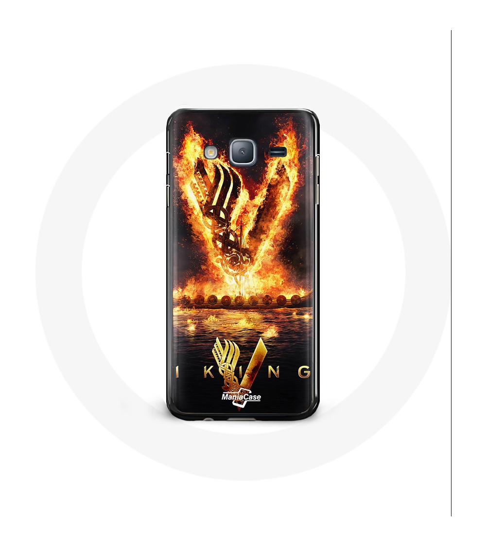 Coque pour Samsung Galaxy A3 Vikings Série Saison 6 logo V Epée de Feu Fond Noir