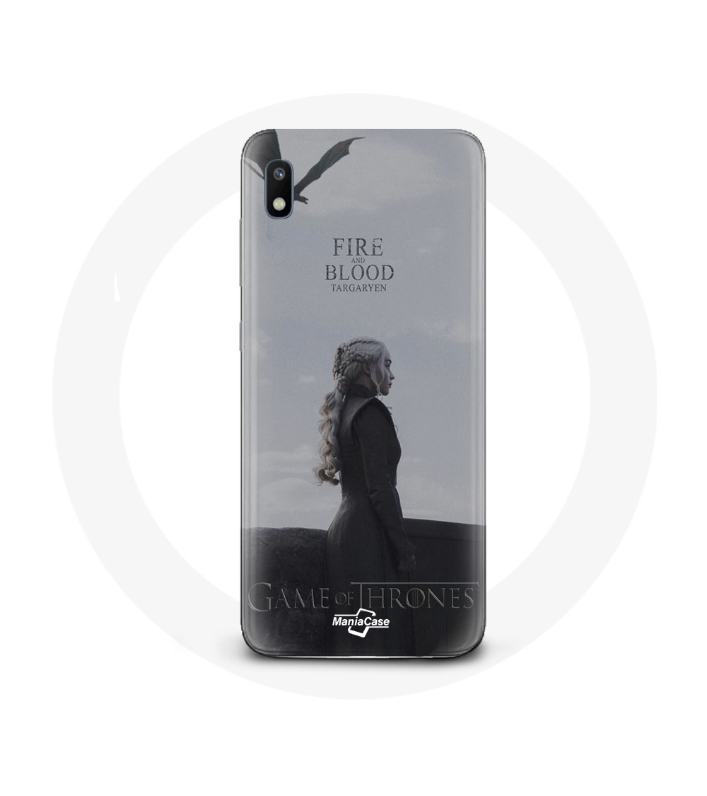 Coque pour Samsung Galaxy A10 Game of Thrones Saison 8 Daenerys Targaryen feu et sang Le Trône de Fer Logo Gris