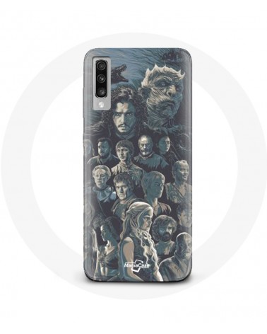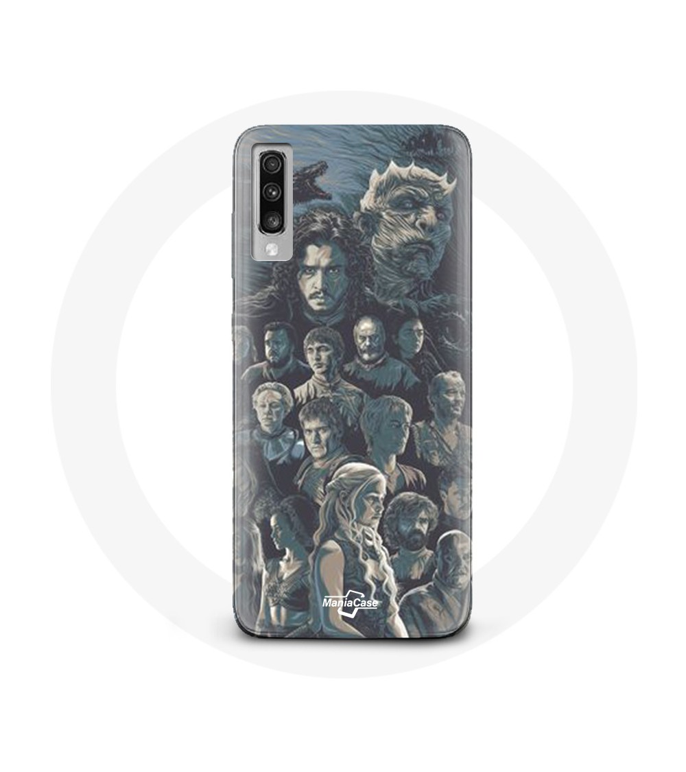 Coque de protection pour Samsung Galaxy A70 Game of Thrones Saison 8 Le Trône de Fer Affiche Personnages Fond Gris