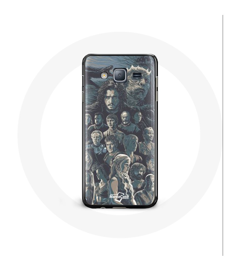 Coque de protection pour Samsung Galaxy J3 2016 Game of Thrones Saison 8 Le Trône de Fer Affiche Personnages Fond Gris