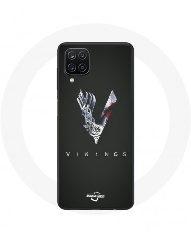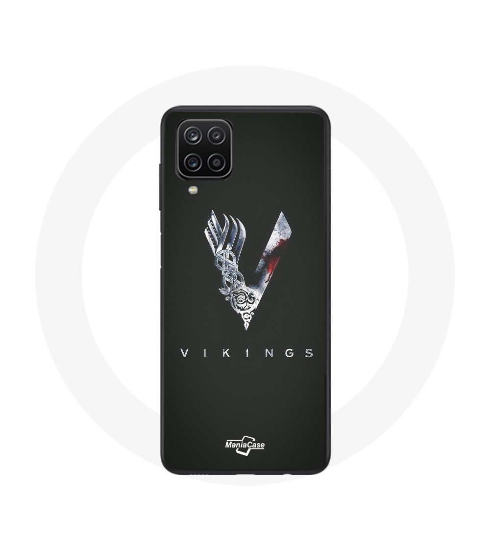 Coque pour Samsung Galaxy A22 4G Vikings Série Saison 6 logo V Epée Gris Fond Noir